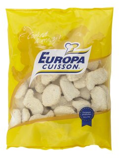 60,0 % Cooked chicken meat: Chicken meat, Water, Chicken skin, Vegetable fiber, SOYA proteins, Potato starch, Dextrose, Salt, Yeast extract, Hydrolyzed vegetable proteins, Garlic, Onion, Herbs and spices, Glucose syrup, Stabiliser (E451). 40,0% Nugget coating: Flour (WHEAT, maize), Starch (WHEAT, maize), Water, Vegetable oil (sunflower, rapeseed), Salt, Dextrose, Yeast, Baking powder (E500, E450), Emulsifier (E412), Spices and herbs, Paprika.