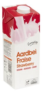 54,6 % LAIT écrémé fermenté, 40 % composantsLACTIQUES liquides, sucre, 1 % jus de fraise, stabilisants(E440, E412), arômes, colorant (E120).