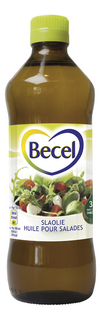 Becel Huile pour salades est constitué d'un mélange d'huile de tournesol et d'huile de colza. Il contient des Omégas 3 et 6 qui sont bons pour le coeur et les artères. # Les Omégas 3 et 6 aident à maintenir un taux de cholestérol sain.Becel Huile pour salades contient 3x plus d'Oméga 3 que dans l'huile d'olive. L'apport quotidien recommandé pour maintenir un niveau de cholestérol sain est de 2 g d'Oméga 3 (acide alpha-linolénique) et 10 g d'Oméga 6 (acide linoléique) par jour. Manger 2 portions de Becel par jour contribue fortement à atteindre ces recommandations.