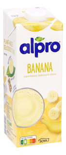 INGRÉDIENTS: base de SOJA (91,7%) (eau, fèves de SOJA décortiquées (7,8%)), sucre, maltodextrine, jus concentré de banane (1,2%), arôme, calcium (carbonate de calcium), stabilisants (farine de graines de caroube, gomme gellane), sel marin de table, correcteur d'acidité (phosphates de potassium), arôme naturel, vitamines (B2, B12, D2)
