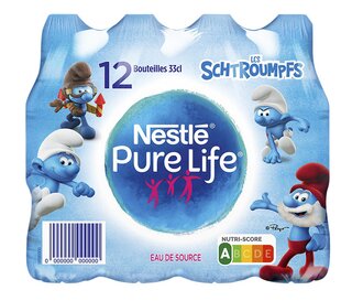 Ne pas laisser les enfants de moins de 36 mois jouer avec le bouchon, ils risqueraient d'avaler des petits éléments. Cet emballage est exclusivement destiné à contenir de l'eau de source Nestlé Pure Life.