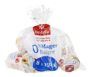 Ingrédients cerise: yaourt maigre (LAIT) 88%, sucre, cerises (4%), eau, amidon de maïs modifié, épaississants: gélatine et pectine, concentré de betterave rouge, arôme, conservateur: sorbate de potassium, régulateurs d'acidité: citrate de calcium et acide citrique. Ingrédients fruits du verger: yaourt maigre (LAIT) 88%, sucre, pomme (2%), poire (1%), pêche (0,5%), abricot (0,5%), eau, amidon de maïs modifié, épaississant: gélatine et pectine, régulateurs d'acidité: acide citrique et citrate de calcium, arôme, conservateur: sorbate de potassium, concentré de carthame et concentré de citron. Ingrédients fraise: yaourt maigre (LAIT) 88%, sucre, fraises (4%), eau, amidon de maïs modifié, épaississants: gélatine et pectine, arôme, régulateurs d'acidité: acide citrique et citrate de calcium, conservateur: sorbate de potassium, colorant: carmin. Ingrédients ananas: yaourt maigre (LAIT) 88%, ananas (4%), sirop de glucose-fructose, sucre, eau, amidon de maïs modifié, épaississants: gélatine et pectine, arôme, conservateur: sorbate de potassium, régulateurs d'acidité: acide citrique et citrate de calcium.