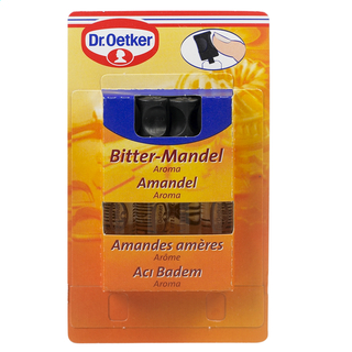 Le goût subtilement amer de l’Arôme d’Amandes de Dr. Oetker est sans conteste à conseiller afin d'apporter la touche raffinée à votre pâtisserie. 6 gouttes d'arôme suffisent pour 500 g de farine ou 500 ml de liquide. L’Arôme d’Amandes peut aussi s’utiliser par gouttes afin de doser avec exactitude l’intensité du goût recherché.