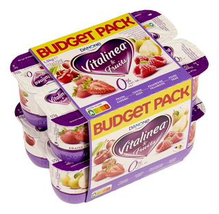 Ingrédients :, yaourt 0% M.G. (dont 87% de LAIT), fraise (12%), poire (10%), cerise (10%), framboise (10%), fibre alimentaire (oligofructose), épaississants (amidon modifié de maïs, pectine, carraghénanes, gomme guar), arômes (LAIT), jus concentré de carotte noire, correcteurs d'acidité (citrate de sodium, acide lactique, acide citrique), minéral (citrate de calcium), jus concentré de raisin, édulcorants (acésulfame K, sucralose), colorant (anthocyanes), vitamine D,