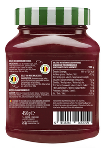 Jus de groseilles rouges, sucre, sirop de glucose fructose, gélifiant: pectines, correcteur d'acidité : citrates de sodium