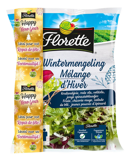 Printemps : Frisée, chicorée rouge, salade de blé et jeunes pousses de blette rouge Eté : Frisée, chicorée rouge, salade de blé et roquette Automne : Frisée, chicorée rouge, salade de blé et jeunes pousses de laitue rouge Hiver : Frisée, chicorée rouge, salade de blé et jeunes pousses d'épinard