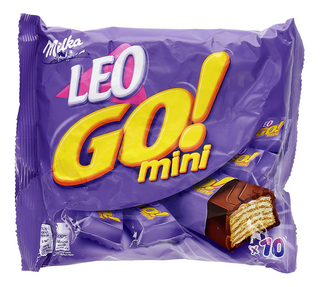 Gaufrette (10 %) enrobée de chocolat au lait du pays alpin (46 %) fourrée crème confiseur (22 %) et fourrée crème confiseur (20 %) au cacao.