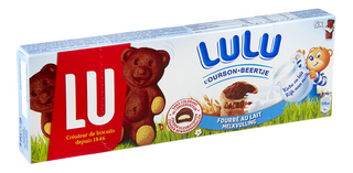 Ingrédients: Farine de BLÉ 23,6%, sirop de glucose-fructose, sucre, OEUF 12,5%, huile de colza, stabilisant (glycérol), LAIT écrémé 3,8% et LAIT entier 2,5% en poudre (équivalent LAIT 60%), cacao maigre en poudre 1,8%, amidon de BLÉ, dextrose, poudres à lever (diphosphate disodique, carbonate acide de sodium), sel, émulsifiants (E472b, E475, lécithine de SOJA), arômes, épaississant (gomme de guar), correcteur d’acidité (acide citrique). PEUT CONTENIR FRUITS À COQUE.