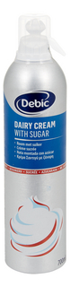 rème fouettée sous pression (37% de M.G.) sucrée, stérilisée UHT.