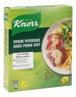 Ingrédients: Farine de BLÉ, graisse de palme, amidon de pomme de terre, sel, sirop de glucose déshydraté, graines de poivre vert¹ 2,8%, arôme, protéines de LAIT, sel minéral (potassium), CRÈME déshydratée, protéines de maïs hydrolysées, poivre, extrait de levure, sucre, oignon¹ en poudre, ail¹ en poudre, extrait de malt d'ORGE, racine de persil¹ en poudre, curcuma, colorant: extrait de paprika. Peut contenir: céleri, œuf, céréales hybrides, avoine, seigle, moutarde, soja. ¹issus de l'agriculture durable.