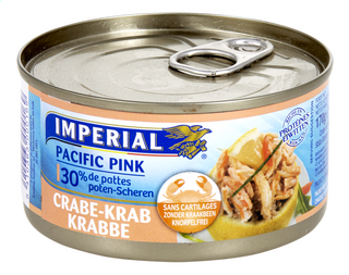 CRABE (70% chair et 30% pattes) (71,18%), eau (27,49%), sel (0,96%), sucre (0,31%), acide citrique E330 (0,06%), sodium METABISULFITE E223 (0,001%)