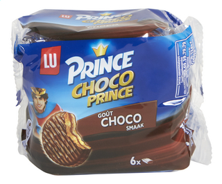 Biscuits fourrés (24 %) parfum chocolat et enrobés de chocolat au lait (30 %).