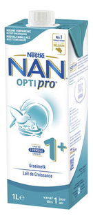 Pourquoi donner du Lait de Croissance NAN OPTIPRO 1+ à votre enfant ? Votre enfant grandit mais a toujours des besoins nutritionnels spécifiques. Ce lait liquide contribue à lui donner des bases solides pour la vie, grâce : Au fer, qui contribue au développement cognitif normal de l'enfant. Aux vitamines A et C qui soutiennent son système immunitaire. À la vitamine D et au calcium qui contribuent au développement des os. À sa recette sans vanille qui favorise de bonnes habitudes alimentaires.