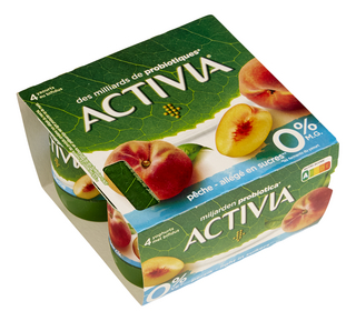 Ingrédients :, yaourt 0% M.G. (LAIT) avec Bifidus ActiRegularis®, pêche (8,1%), fructose (1,7%), épaississants (amidon modifié de maïs, pectine), concentré de carotte et citrouille, correcteurs d'acidité (acide citrique, citrate de calcium, citrate de sodium), arôme, édulcorants (acésulfame K, sucralose),