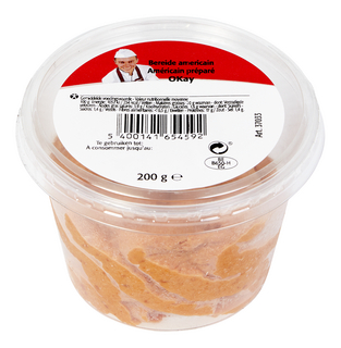 71 % viande de boeuf, huiles végétales(tournesol, colza), jaunes d’OEUFS (au sol), extrait de plantes aromatiques (contient du CÉLERI),vinaigre, dextrose, sel, moutarde (graines de MOUTARDE, vinaigre, sel, épices), eau, concentré detomates, plantes aromatiques et épices (contient du CÉLERI), sucre, vinaigre d’eau-de-vie, vinaigrede malt d’ORGE, sirop de caramel, huile de citron, extrait de paprika, tomates en poudre, oignons,ail, arôme (contient du CÉLERI), maltodextrine, stabilisants (E412, E415), acidifiants (E330, E334),conservateurs (E202, E211), amidon modifié (E1422), correcteur d’acidité (E262), antioxydants(E300, E301, E331).