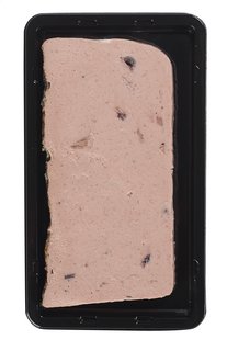 25% foie de porc, graisse de porc, crème de riz (LAIT, farine de riz), 12% viande de porc, 12% confiture (sucre, 26% canneberge, 22% airelles), tissu conjonctif de porc, OEUF, acidifiant: E262, E325; sucre, sel nitrité pour saumure (sel, conservateur: E250), oignon cuit, arôme naturel, épices (MOUTARDE), amidon de pois, antioxygène: E300, E330; dextrose, hémoglobine. Fabriqué dans une usine où orge, noix, seigle, céleri, soja, sulfite et froment sont traités.