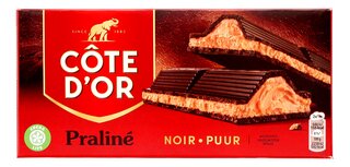 Ingrédients : Sucre, praliné (29%) (NOISETTES (14%), sucre), pâte de cacao, graisses végétales (palme, karité), beurre de cacao, BEURRE concentré, LAIT écrémé en poudre, émulsifiant (lécithines de SOJA), lactosérum en poudre (de LAIT), arôme naturel de vanille, arômes. PEUT CONTENIR AUTRES FRUITS À COQUE.