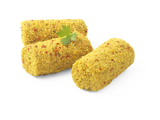 Rouleaux de hachis de poulet et de dinde assaisonné, de fromage et de jambon de dinde, panés
