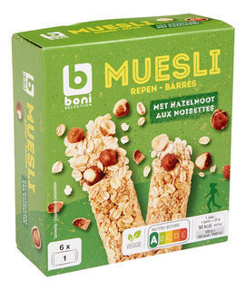 Boni Selection Muesli barres aux noisettes 6 pièces 150 g
