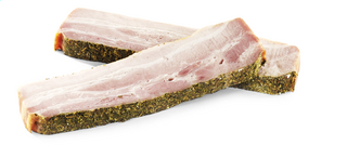 Lard de porc saumuré et épicé, découenné, avec ajout d'eau