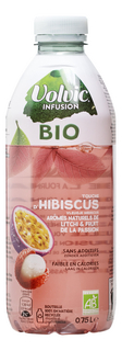 Ingrédients: Eau minérale naturelle Volvic (94,1%), sucre de canne BIO (2,2%), jus de citron BIO à base de concentré, infusion d'hibiscus BIO (0,15%), arômes naturels, concentré BIO de carotte, pomme et cassis