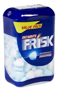 Ingrédients: édulcorants (sorbitol, aspartame, sucralose, acésulfame-K), arômes, antiagglomérant (sels de magnésium d'acides gras), colorant (bleu brillant FCF).