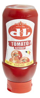 Ingrédients: purée de tomates à base de concentré 55%, sucre, vinaigre, dextrose, jus de pomme concentré, amidon modifié, sel, épices, arôme.