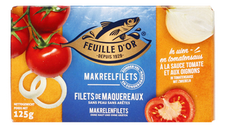 Feuille d'Or, filets de maquereaux à la sauce aux oignons et à la tomate, 125 g