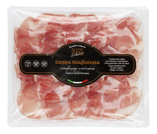 Viande de porc (Origine: Italie), sel, épices, arômes, conservateurs: E250 (nitrite de sodium), E252 (nitrate de potassium).