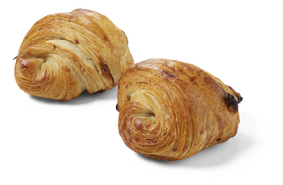 Pate levée feuilletée surgelée, couque au beurre aux raisins (11%), prêt à cuire.