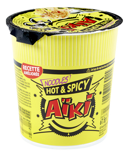 Ingrédients du produit sec: NOUILLES instantanées 88% [farine de BLE (GLUTEN), huile de palme, sel, amidon modifié, exhausteur de goût: E621, agents levants: E500, E501 et E451], condiment en poudre 11% [exhausteurs de goût: E621 et E635, sel, amidon de pomme de terre, sucre, poivron rouge en poudre 4,0%, sirop de glucose, sauce SOJA en poudre (SOJA, BLE (GLUTEN), maltodextrine, sel), persil, carotte, piment en pièces et poudre 2,8%, épices, colorants: E160c, E100 et E150a, arômes, huile de tournesol, régulateur d'acidité: acide citrique, curry en poudre (contient de la MOUTARDE), ail en poudre]. Peut contenir des œufs, crustacés, poisson, sésame, mollusques, dioxyde de soufre, sulfites, céleri et lait.