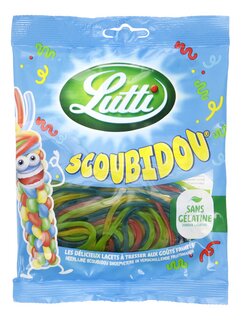 Ingrédients: Sirop de glucose-fructose, Farine de BLÉ, Sucre, Dextrose, Huile végétale (Palme), Acidifiant (Acide citrique), Arômes, Colorants (E100, E131, E133, E163), Antioxydants (Acide ascorbique, E306), Agent d'enrobage (Hydroxypropylcellulose).