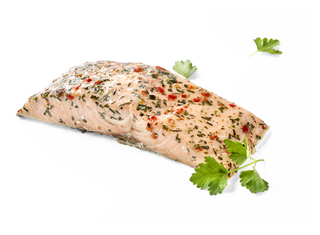 saumon (97.5% , Salmo salar), sel, épices (paprika, persil, ciboulette)