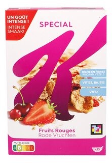 INGRÉDIENTS: Riz (45%), BLÉ complet (36%), sucre, ORGE (4.5%), fruits lyophilisés (4.5%)(fraise, cerise, canneberge), farine d'ORGE maltée, sel, extrait de malt d'ORGE, niacine, fer, riboflavine, thiamine, vitamine B6, acide folique, vitamine D, vitamine B12.