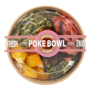 Riz 54,9% (riz, vinaigre d’alcool et de riz, lie de saké, sel, sucre ,mélasse, huile de tournesol, fibres de soja, amidons, acidifiant : E325, émulsifiant : E472a,enzymes), saumon 22% (poisson), edamame 5,5% (graines de soja), gingembre mariné 5,5% (gingembre (56%), eau (29.64%), sucre, sel, vinaigre distillé, acidifiant E330, exhausteur de goût E621, conservateur E202, colorant E163, soja, blé, anhybride sulfureux), mangue 5,5%, salade d'algues 5,5% (algues un Daria, pinatifida (68%), agar agar, champignons noirs kikurage (5.8%), graines de sésame, huile de sésame, sucre, vinaigre, exhausteur de goût E621, sel, piment rouge, colorant E102, E133, lait, soja, gluten, moutarde, oeufs), sésame 0,5%, feuillle de nori 0,5%