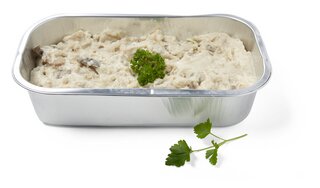 Ingrédients : 99,7 % vol-au-vent [52 % sauce (eau, huiles et graisses végétales (huile de tournesol, huile de colza, graisse de palme), amidon modifié (E1422), lactosérum en poudre (LAIT), creamer (huile de palme, sirop de glucose, protéines de LAIT, stabilisant (E451)), palmoléine, sel, farine de BLÉ (gluten), arômes, maltodextrine, LAIT écrémé en poudre, graisse de poulet, antioxydant (E392), extrait de champignon, extrait d'épice, épaississants (E412, E415), correcteur d'acidité (E330), colorant (E150c), antiagglomérant (E551)], 36 % viande de poulet, 7 % boulettes de viande [viande de poulet, chapelure (BLÉ (gluten), amidon (BLÉ (gluten)), sel, épices, protéines de LAIT, extrait de levure, dextrose, arôme, sucre, huile végétale (tournesol), glucose, légumes en poudre (poireau, oignon), stabilisant (E450ii)), 5 % champignon], 0,3 % persil. Peut contenir des traces de: soja, oeuf, céleri, moutarde.