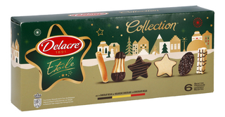 Ingrédients : farine de BLE - chocolat (23%) (sucre, pâte de cacao, beurre de cacao, BEURRE pâtissier, émulsifiant : lécithine de SOJA) - sucre - graisses végétales (palme, colza, palmiste) - chocolat blanc (6%)(sucre, beurre de cacao, LAIT écrémé en poudre, LACTOSERUM en poudre, BEURRE pâtissier, émulsifiant: lécithine de SOJA, arôme) - BEURRE pâtissier - cacao maigre en poudre (0,6%) - LACTOSE et protéines de LAIT - dextrose - chocolat au LAIT (0,3%)(sucre, beurre de cacao, pâte de cacao, LAIT écrémé en poudre, BEURRE pâtissier, émulsifiant :lécithine de SOJA, arôme) - noix de coco (0,2%) - OEUFentier en poudre - sel - amidon de BLE - blanc d’OEUF en poudre - émulsifiant : lécithine de SOJA - arômes - poudres à lever : carbonates de sodium, carbonates d'ammonium - LAIT écrémé en poudre