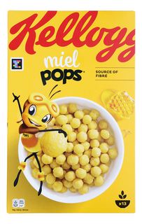 INGRÉDIENTS: Farine de maïs (80%), sucre, sirop de glucose, fibre de maïs, miel (2%), extrait de malt d'ORGE, sel, arôme naturel, niacine, fer, vitamine B6, riboflavine, thiamine, acide folique, vitamine D, vitamine B12, colorant (caroténoïdes).Peut contenir gluten provenant d’autres céréales, lait, soja