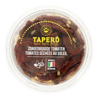 Ingrédients: 70% tomates séchées au soleil (tomate, sel, conservateur: DISULFITE de sodium ; glucose, acidifiant : acide citrique), huile de colza, gousses d'ail (ail, sel, correcteur d’acidité : acide lactique), graines de tournesol, vinaigre balsamique (vinaigre de vin, moût de raisin, colorant : caramel au SULFITE d'ammonium), acidifiant: acide citrique) ; herbes.