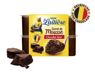 Mousse lactée au chocolat noir (92%) et sauce au chocolat (8%).