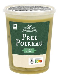 Ingrédients: Eau, 22,6 % poireau, oignon, CÉLERI-rave, assaisonnement [bouillon de légumes (sel, maltodextrine, arôme naturel, sucre, légumes déshydratés (oignon, carotte, tomate), huile de tournesol), amidon modifié, poireau, arôme naturel, poivre blanc], pomme de terre, huile de colza. Peut contenir des traces de gluten (blé), de crustacés, d'œufs, de poisson, de soja, de lait, de fruits à coque (amandes, noisettes, noix et noix de cajou), de moutarde, de sésame et de sulfites.