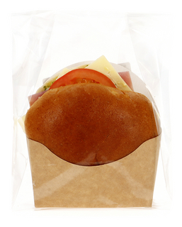 Pain sandwich bun garni de fromage, de jambon, d'une préparation aux œufs à la mayonnaise et de salade mixte.