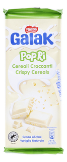 CHOCOLAT BLANC AVEC DES CÉRÉALES DE RIZ CROUSTILLANTE.