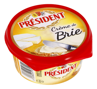 Brie Président (55%) (LAIT), LAIT écrémé reconstitué, beurre (LAIT), protéines de LAIT, sels de fonte (E339, E452), conservateur: sorbate de potassium, épaississants: gomme xanthane, farine de graines de carouche. Présence possible d'OEUFS.