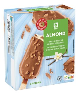 65% GLACE À LA VANILLE ENROBÉE DE 29% CHOCOLAT AU LAIT ET 6% AMANDES