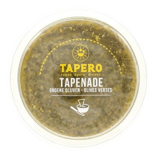 Ingrédients: Olives vertes 71 % (olive, sel, acides : acide lactique, acide citrique), huile de colza, basilic, gousses d’ail (ail, sel, correcteur d’acidité : acide lactique), câpres (câpres, vinaigre de vin, sel), huile d’olive extra vierge, jus de citron concentré, conservateur : sorbate de potassium ; Épaississant : gomme xanthane, gomme de guar.