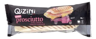 INGRÉDIENTS: 64% panini de blé blanc (FARINE DE BLÉ, eau, levure, huile de tournesol, FARINE DE BLÉ MALTÉ, sel iodé, dextrose, MALT D'ORGE, agent de traitement de la farine : acide ascorbique), 14% fromage Gouda (LAIT, sel, présure microbienne, ferment lactique), 14% jambon cuit et fumé (61% viande de porc, eau, amidon de pommes de terre, acidifiant : lactate de potassium/acétates de sodium, sel, stabilisant : triphosphates/polyphosphates/algues euchema transformées, dextrose, antioxydant : ascorbate de sodium, conservateur : nitrite de sodium, fumée de hêtre), 9% préparation de tomate à la paprika (eau, 12% tomates séchées [11% tomate, sel], 12% purée de tomates, oignons, 10% cubes de tomates, huile de colza, sucre, cornichons [cornichons, vinaigre, sel], vinaigre, 2% purée de paprika [purée de paprika, acidifiant : acide citrique], chou-fleur, herbes, ail, épices [FARINE DE MOUTARDE, GRAINES DE MOUTARDE], sel).