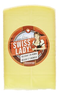 SWISS LADY – Portion de fromage suisse mi-dur, fabriquée à partir de lait de vache thermisé, avec au moins 55 % de matière grasse sur extrait sec, 180 g