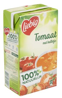 Ingrediënten: tomatensap op basis van concentraat 47%, water, wortel, gerehydrateerde ui, gerehydrateerde aardappel, vleesballetjes 5,8% (varkensvlees, rundvlees, paneermeel (TARWEBLOEM, gist), water, zeezout, specerijen), SELDERIJ, prei, pastinaak, zout, koolzaadolie, geconcentreerde BOTER, magere MELKPOEDER, natuurlijke aroma's (bevat MELK), cayennepeperpoeder. Kan sporen bevatten van soja, mosterd, sesamzaad, lupine, ei.
