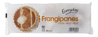 TARWEbloem, suiker, 13 % abrikozenbereiding [glucose-fructosestroop, 12 % geconcentreerdeabrikozenpuree, geleermiddel (E440), voedingszuur (E330), zuurteregelaars (E331, E333), natuurlijk aroma], raapzaadolie, plantaardige vetten (palm, kokos,shea), EIEREN (scharrel), aardappelpoeder, glucosestroop, bevochtigingsmiddel (E420), TARWEzetmeel, zout, emulgatoren [E322 (bevat SOJA), E471],rijsmiddelen (E450, E500), verdikkingsmiddelen (E406, E415), gemodificeerd zetmeel, voedingszuur (E330), geleermiddel (E440), verstevigingsmiddel(E509), SOJAbloem, SOJA-eiwitten, weipoeder (bevat MELK), aroma's (waarvan amandel), conserveermiddel (E202).